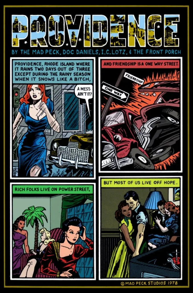 The Providence poster will likely remain the most enduring creation of The Mad Peck — who, of course,produced the icon comic strip with former wife Vicky, Comix collaborator Les Daniels, and the proprietors of the vintage clothing shop, The Front Porch — which adorned the dorm room walls of many Rhode Island-based college students. Over the years, Peck had a nice side hustle selling the poster as a post card and a colored version of both.